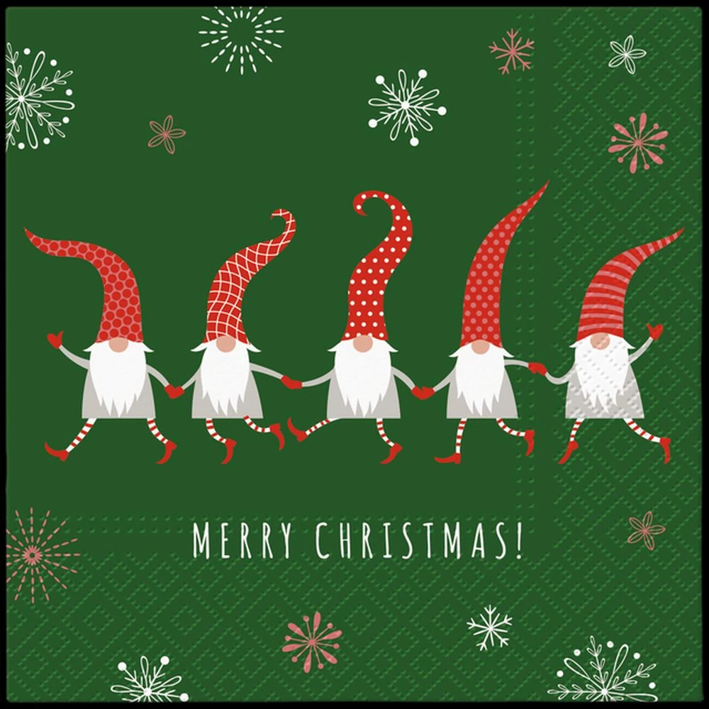 Karácsonyi dekorszalvéta 3 rétegű papír "Barátságos manók" 33x33 cm 20 lap/csomag