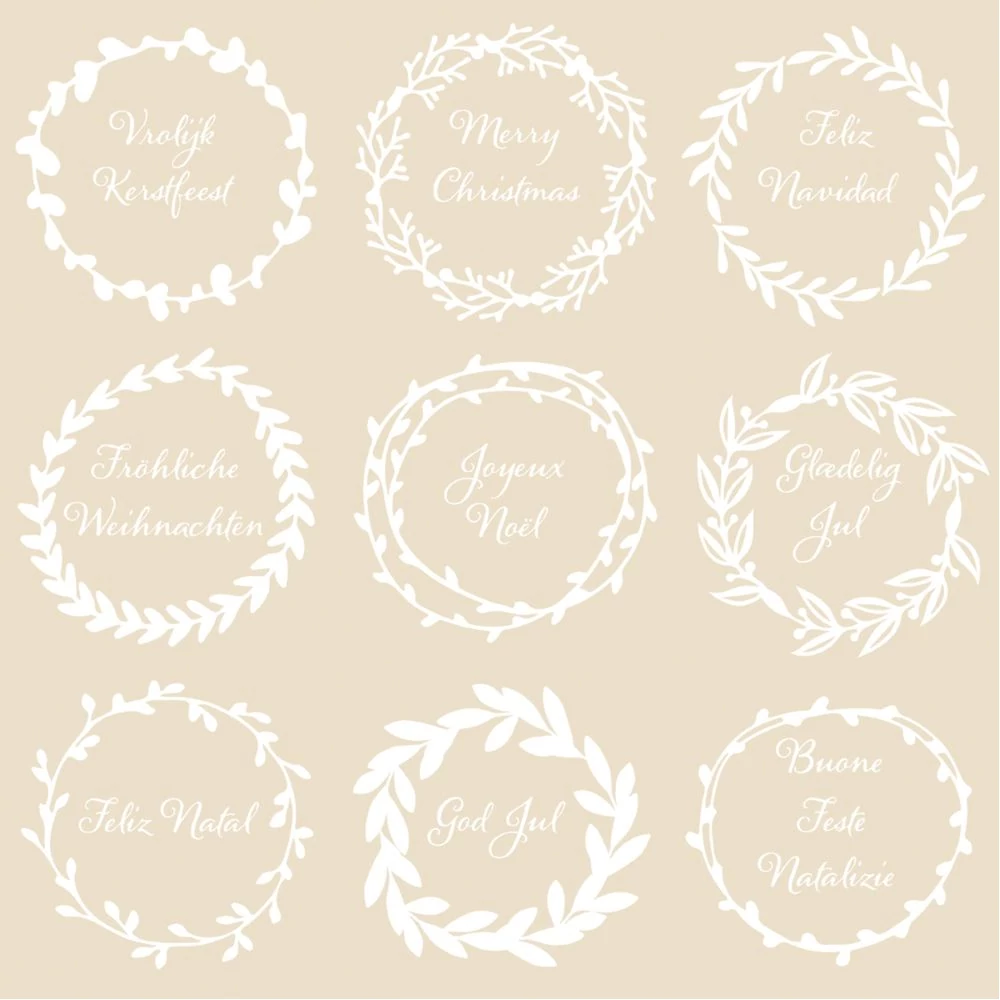 A Duncan textilhatású szalvéta azok számára készült, akik szeretnék, hogy ünnepi asztaluk egyszerre legyen elegáns, mégis barátságos hangulatú. A szalvéta különlegességét a világ minden táján elhangzó karácsonyi jókívánságok adják, amelyek finom, koszorúmotívumba foglalva jelennek meg a lágy, bézses alapfelületen. „Merry Christmas”, „Joyeux Noël” vagy éppen „Feliz Navidad” – a feliratok nemcsak a nyelvi sokszínűséget idézik meg, hanem a karácsony egyetemes üzenetét is: a békét, szeretetet és összetartozást.